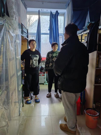 进入宿舍,宋老师就目前公司的疫情防控管理要求与同学们做了细致交流,提醒同学们树立健康意识、做好日常健康监测,体温异常及时上报就医,外出时落实个人防护,规范佩戴口罩。
