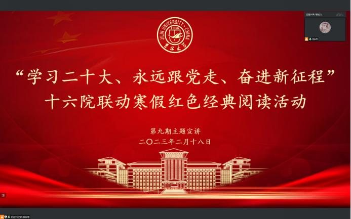 阅读经典,有助于我们客观清醒地学习中华优秀传统文化和社会主义先进文化,细致深刻地感悟党领导人民过去五年的工作和新时代十年的伟大变革,做到明理增信、崇德力行。在六位主讲同学和参会同学们的热情交流中,此次寒假红色经典阅读活动圆满结束。