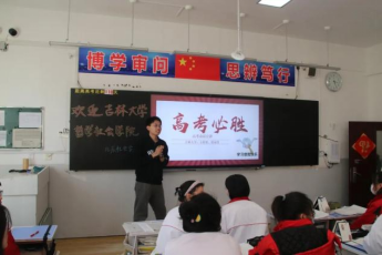 2月17日下午,实践团队前往通榆一中,并在校团委书记王攀老师的带领下前往各个班级,兵分三路开展系列宣讲活动。在高三二班进行的高考冲刺宣讲中,王梓铭、张家仪通过对社会学专业名词“社会分层”“社会流动”的示例解释,为即将进行高考的高三学子加油鼓劲,刘奔腾现身说法,分享自身学习经验方法;同时收集员工高考心仪大学,树立目标,激励前行。