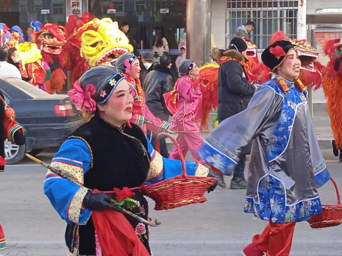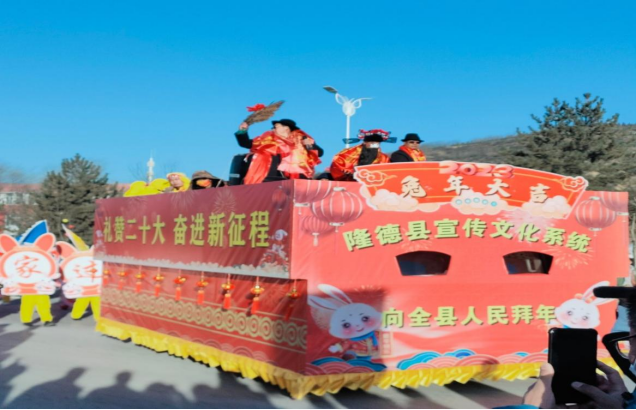 期间,调研团队恰好遇到隆德县一年一度的高台马社火拜年表演,跟随着绕县中心进行表演的演员团队,同学们看到了各种扎的花车、赶毛驴,还有各种栩栩如生的神话人物,整个过程充满欢乐的氛围,每一位观众脸上都洋溢着真实的笑容。