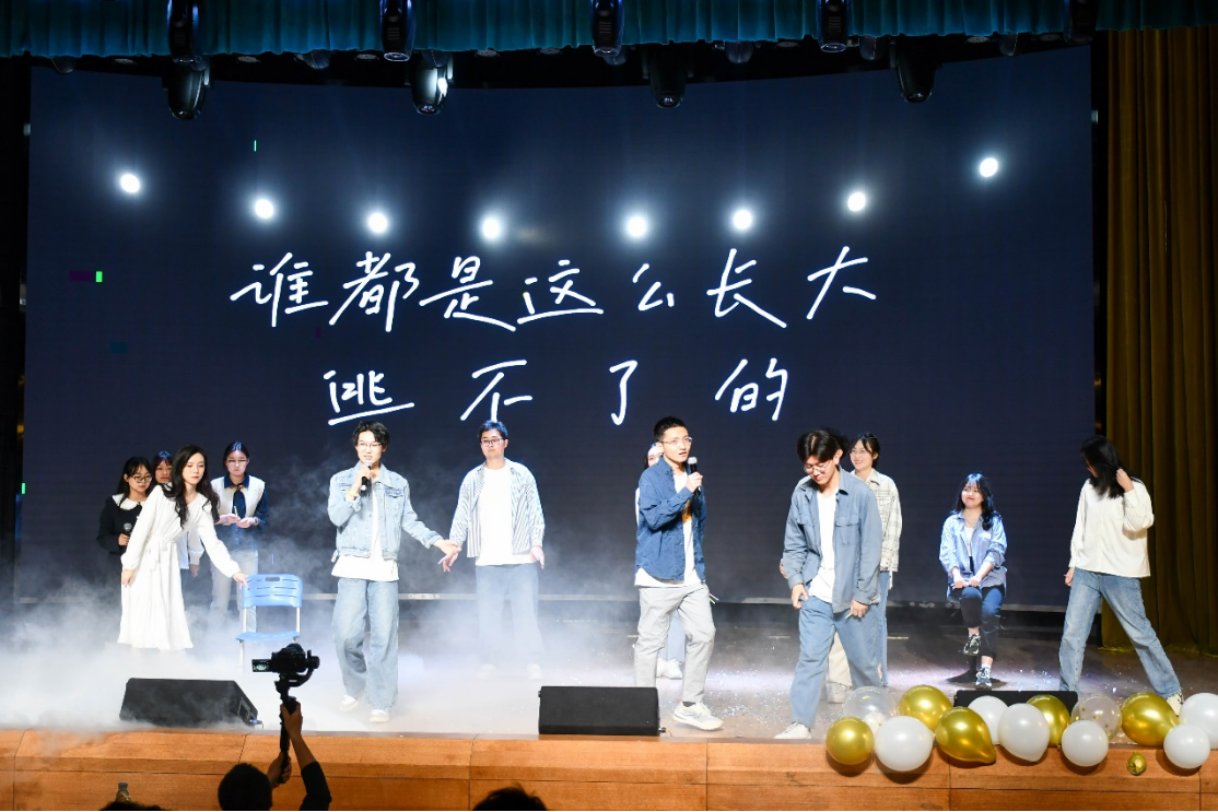 临近尾声,由辅导员宋绍伟老师和派对策划同学们共同带来歌曲《永远都会在》。“生活似海,起伏不定,无边总是望不到头;我欲乘风,浪迹远方,因为我并不平凡普通”,大家温暖的歌声将今晚的派对推向高潮。