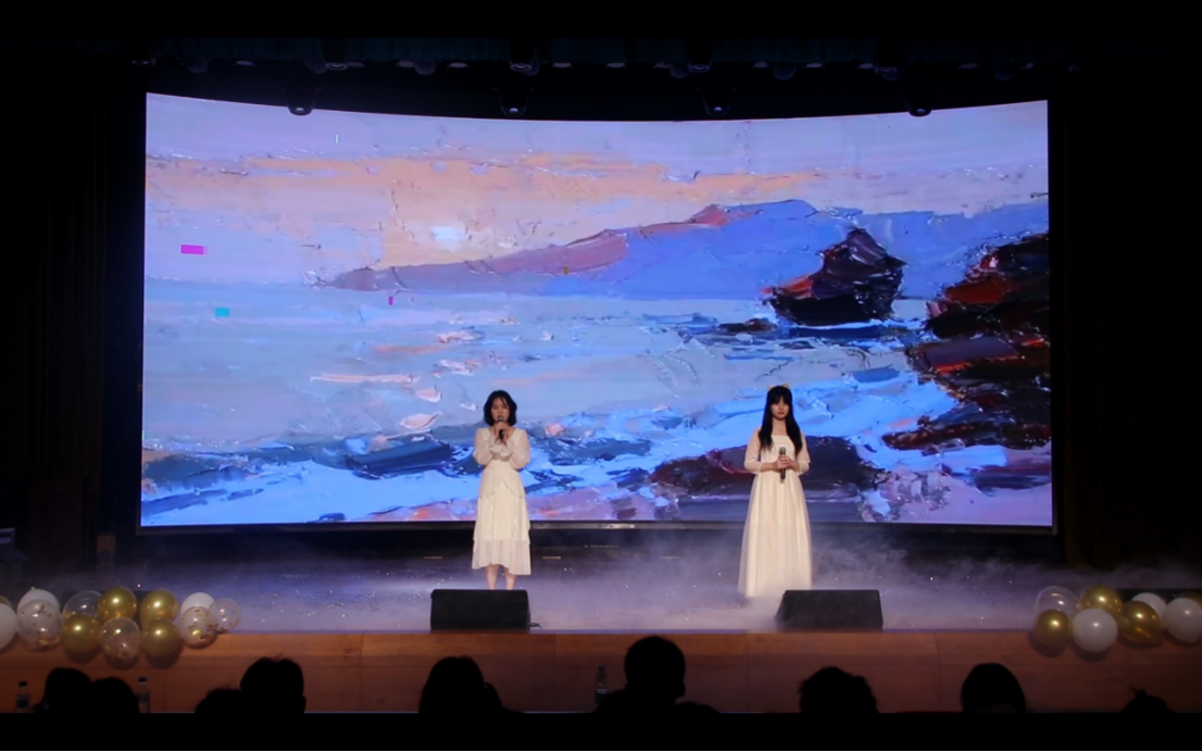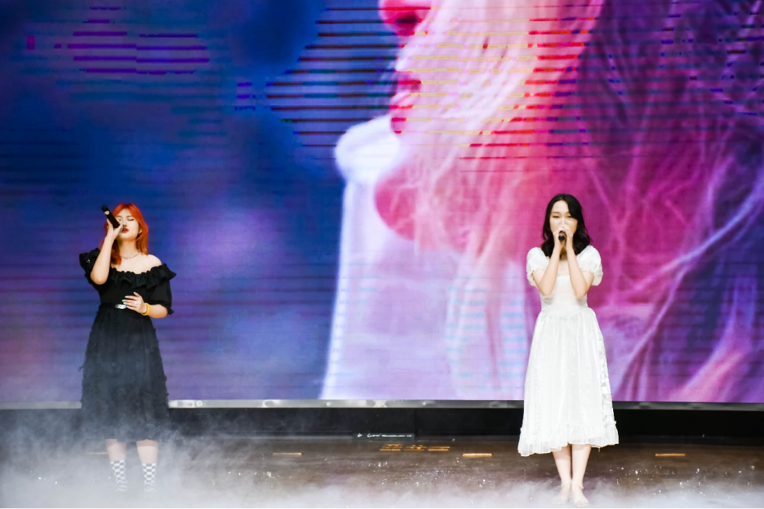 “菀菀黄柳丝,濛濛杂花垂”,春天自然有独属于哲社人的浪漫。当《情歌》的前奏逐渐响起,来自2022级4班的赵家仪、张羽青同学将怦然心动化成歌声传情达意。歌声中,她们唱着青春的美好,向观众们缓缓诉说。