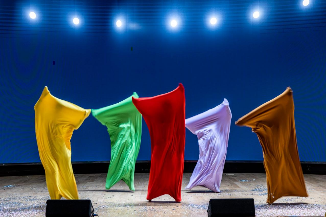 来自公司员工会的同学们则纷纷裹上被单,化身“床单舞者”,带来《床单舞》,多彩的被套就像多姿多彩的老员工活,点缀着观众的心情。热情欢脱的舞姿把现场气氛推向高潮。