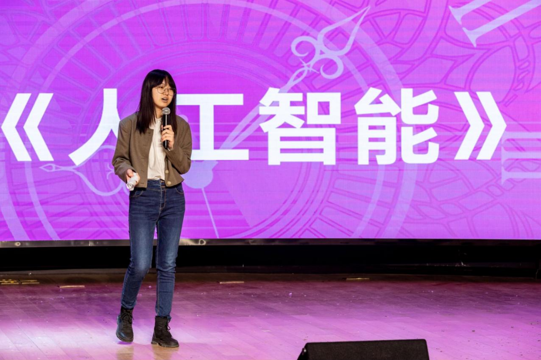 人工智能时代正以不可阻挡之势席卷而来,在享受着科技日新月异、生活更加便利的同时,我们还看到AI正悄悄地抢占着一部分工作机会,于是我们不禁感到困惑:人类又该何去何从呢?2022级1班的戴展彤同学带来的脱口秀《人工智能》以风趣幽默却又不失深刻意蕴的言语让我们有所思考。