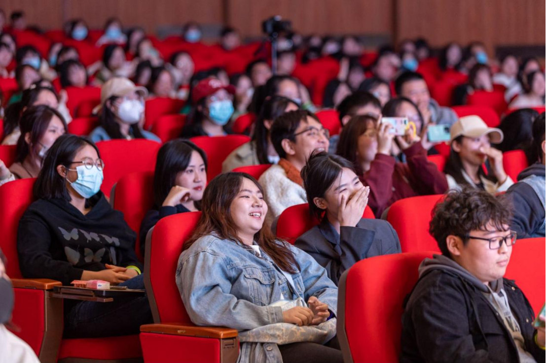这也许是人生中距离K-POP最近的一次?辅导员宋绍伟老师和来自2020级的王梓铭、曾辞源两位同学共同跳起了“三哈”舞,可爱的舞姿和律动的音乐再次将全场的氛围烘托到高潮。台下的观众纷纷举起手机,留下这宝贵的精彩瞬间,笑容在台下每位观众的脸上停留。