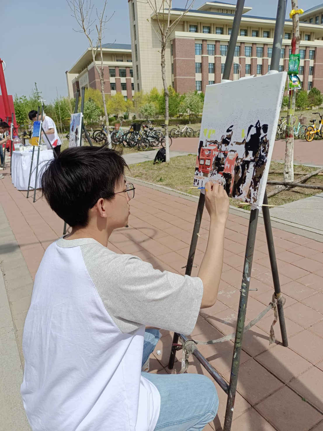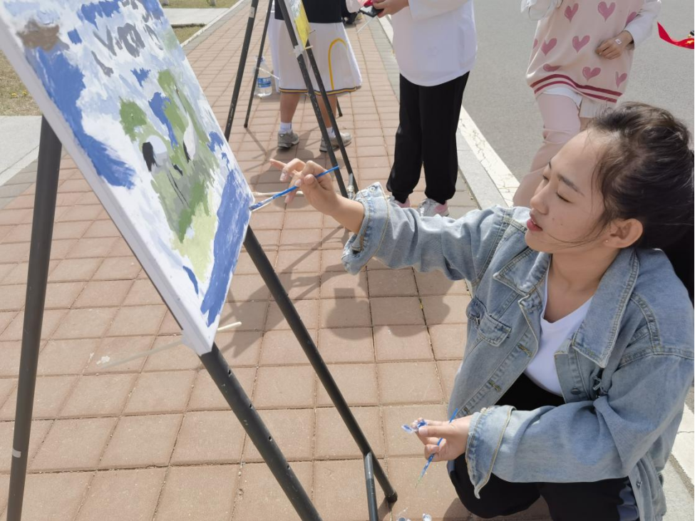同时,公司志愿者同学们积极引导参与活动的师生们在事先准备完毕的画布上挥动画笔,留下青春的色彩。