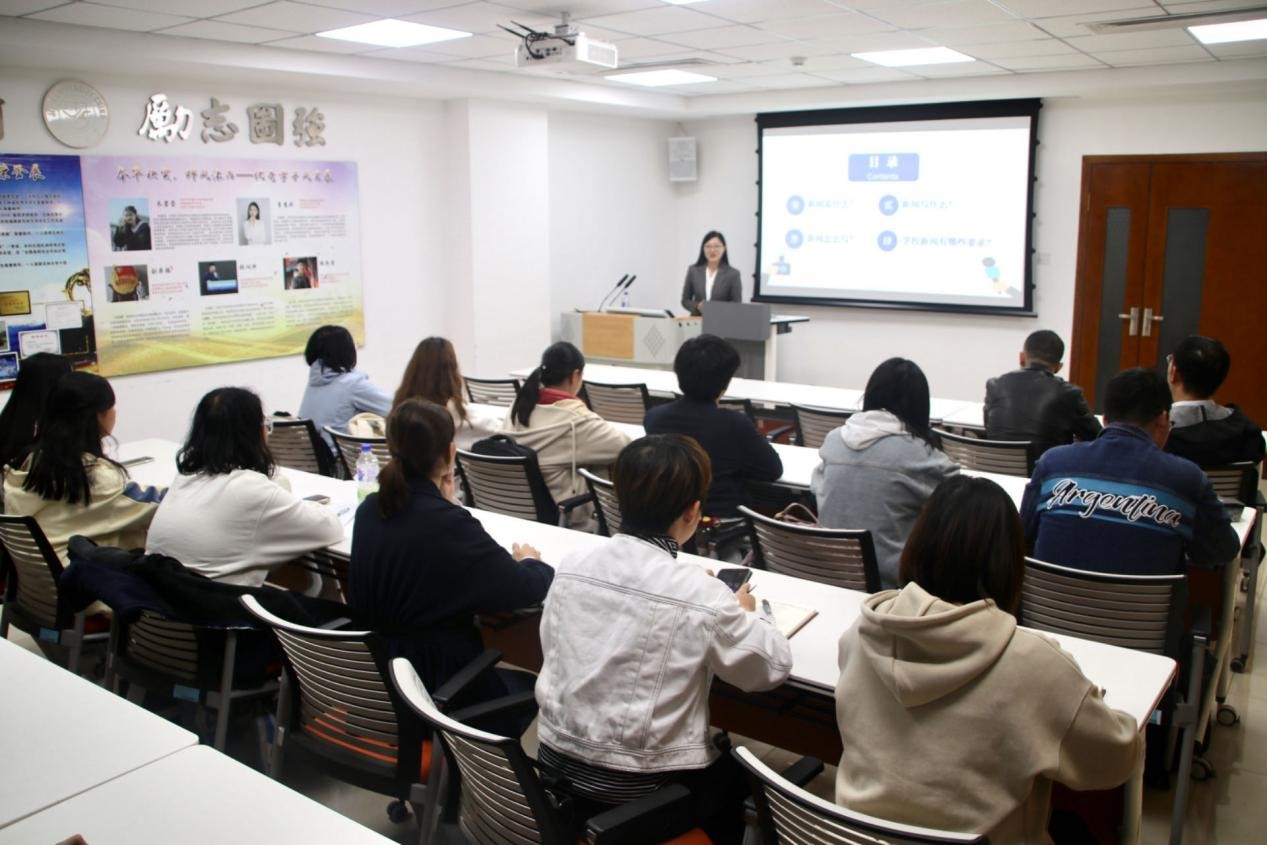 随后,霍老师结合自身新闻的写作经验,以校内重大新闻报道为例,说明了选取主题的内容时应考虑报道的意义及与其他报道不同之处。她提到,新闻写作不仅要注意关联词和动词的使用,还要注意对仗和多样化;与此同时,霍老师指出不同新闻形式有着不同的表达规范,她叮嘱同学们写新闻一定要先深思熟虑,构思出新闻消息的整体脉络,然后以精细入微的态度抽丝剥茧地进行写作。