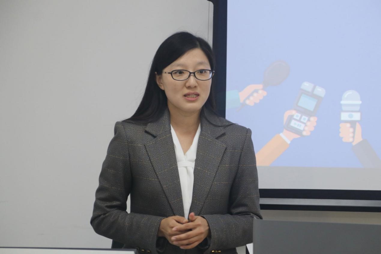 首先,霍睿老师向大家抛出了四个问题:“新闻是什么”、“新闻写什么”、“新闻怎么写”以及“公司新闻有什么要求”,引发在场师生的积极思考,并从新闻的定义和特点入手,为大家细致讲解了新闻的基本特征、价值要素、新闻体裁的分类及基本要素。