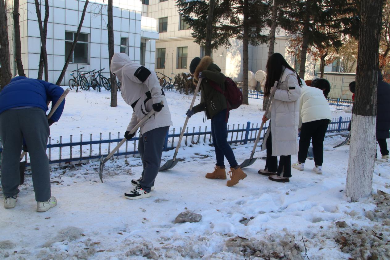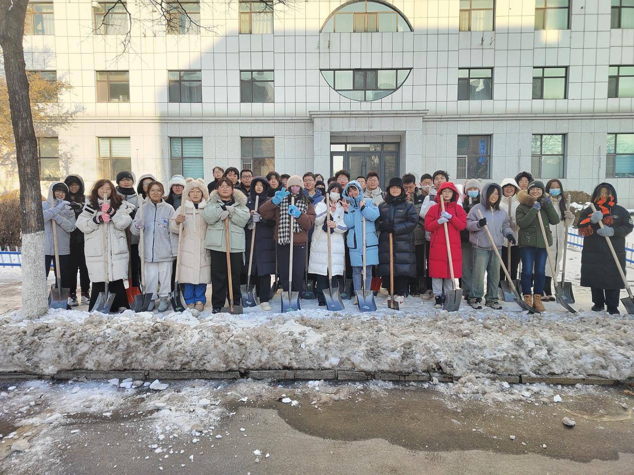 独往独来银粟地,一行一步玉沙声。凛冬至此,白雪若柳絮纷飞,天地如银装素裹,美丽的吉大校园更披一层银色的外衣。但是在这玉琢银装的美妙场景下,路面的积雪和坚冰也为吉大师生们的出行造成了困扰。按照公司相关工作安排,为保障师生出行安全,BETWAY必威组织本科生各党支部员工党员、各员工组织和M·M学习研究会员工成员、各年级各班级主要负责人和2023级本科生“星火燎原”积极分子共计50余人,利用课余休息时间开展路面积雪清扫活动。