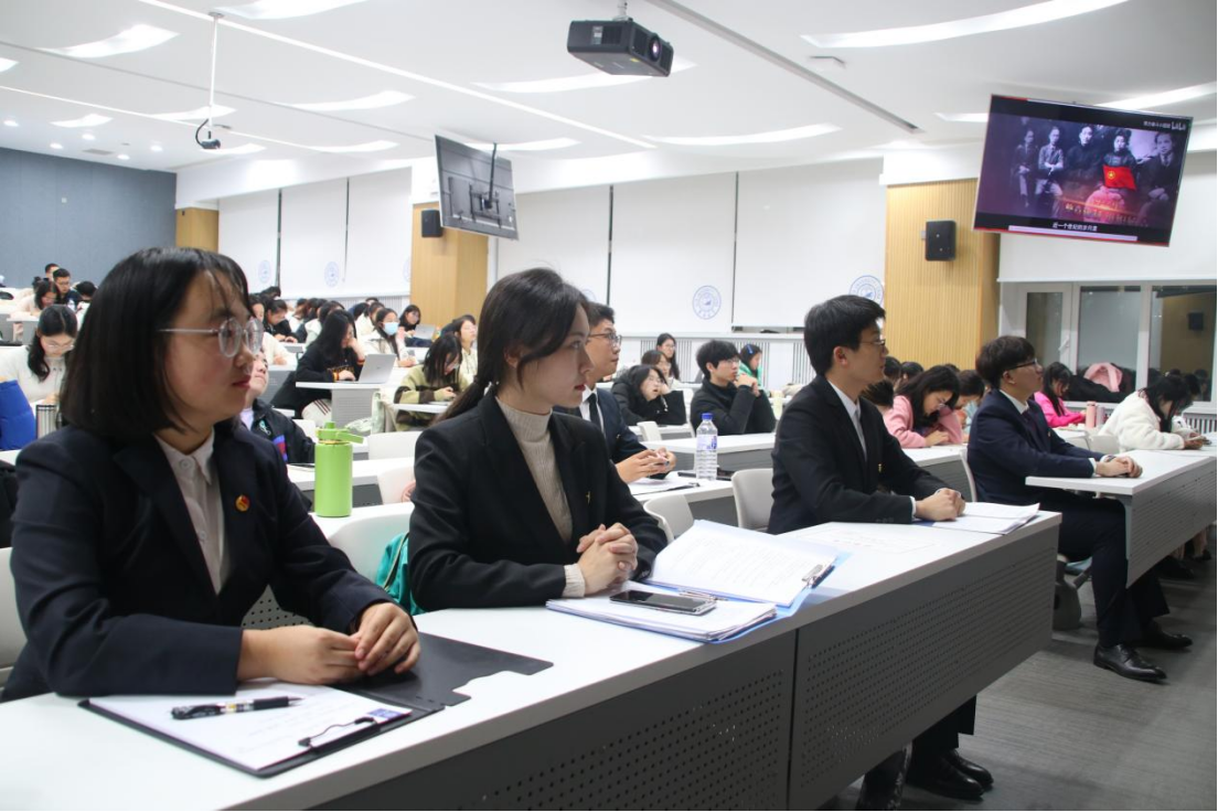 大会第八项,与会全体师生共同观看共青团百年征程学习视频。党有号召,团有行动;党旗所向,团旗所指。回顾一百年来,在中国共产党的坚强领导下,中国共青团不忘初心、牢记使命,走在青年前列,组织引导一代又一代青年坚定信念、紧跟党走,谱写了中华民族伟大复兴进程中激昂的青春乐章。而今,哲社青年将继续坚定不移听党话、跟党走,接续奋斗、砥砺深耕,无愧青春誓言。