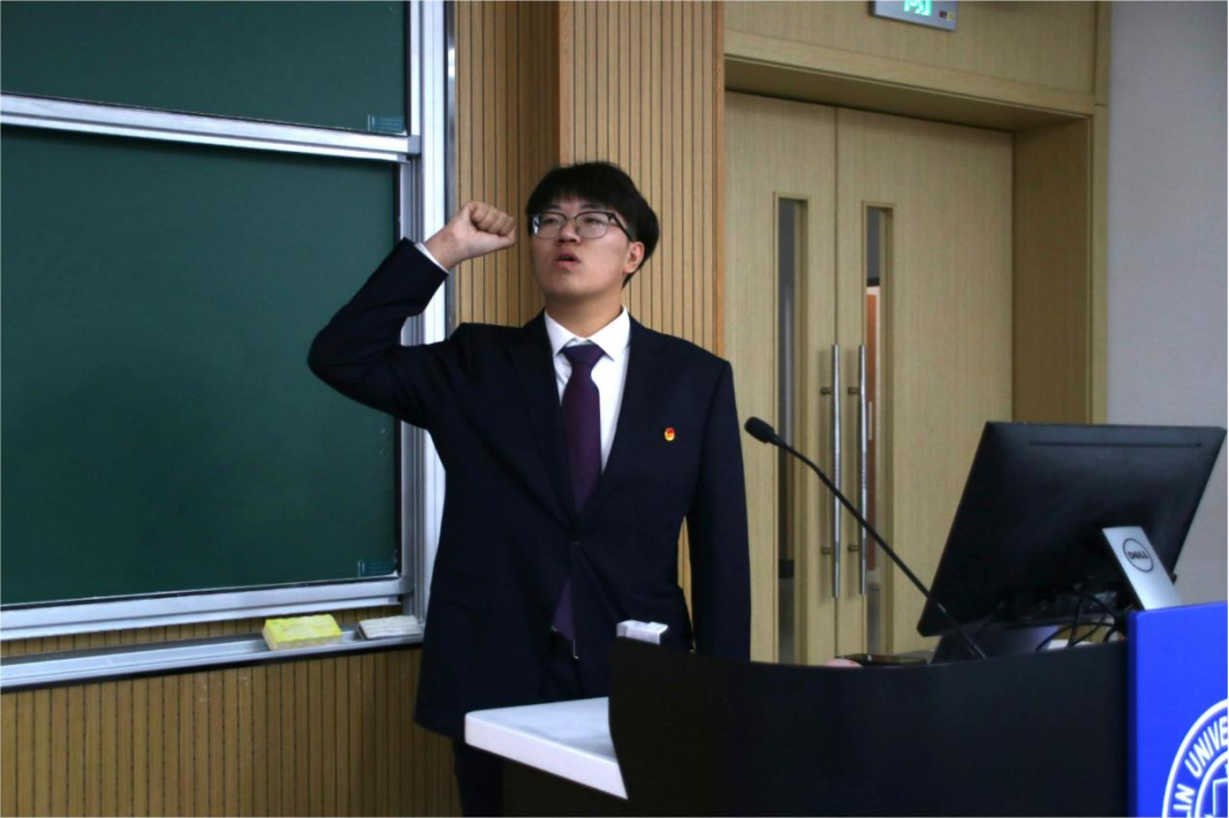 大会第六项,团委主要员工负责人房安国同学发言。房安国与同学们一起深情回顾了公司团校历经十年而不忘初心、砥砺前行的改革建设历程,并对团校十年来坚持“为党育人、为国育才”初心使命、坚持立德树人根本任务,常态化引领、多样化引导团员青年“常学、必学、真学、爱学”,在围绕团校使命任务、创新组织开展形式、打造宣传媒体矩阵等多方面的改革建设措施与活动开展成效进行了回顾。最后,房安国同学结合自身求学经历与切身感悟,深情寄语同学们要坚定理想信念,锤炼思想品格,潜心学业科研,扎根中国乡野,传承秉持“哲思群理,修齐治平”的公司治学传统,在祖国大地上接续书写哲社学子的学术论文与青春华章!