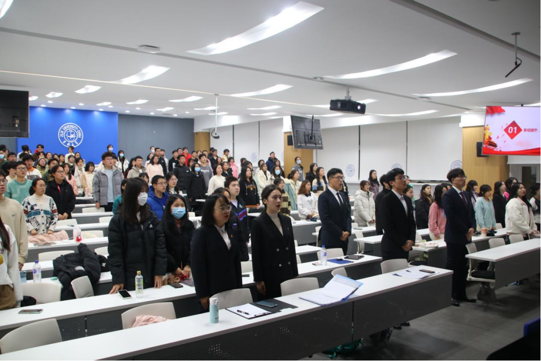 活动在雄壮的国歌声中隆重开幕。全场庄严肃穆,气氛热烈浓重,正如与会全体师生、团员青年在慷慨激昂的旋律里,豪情诉说着心中的滚烫赤忱。