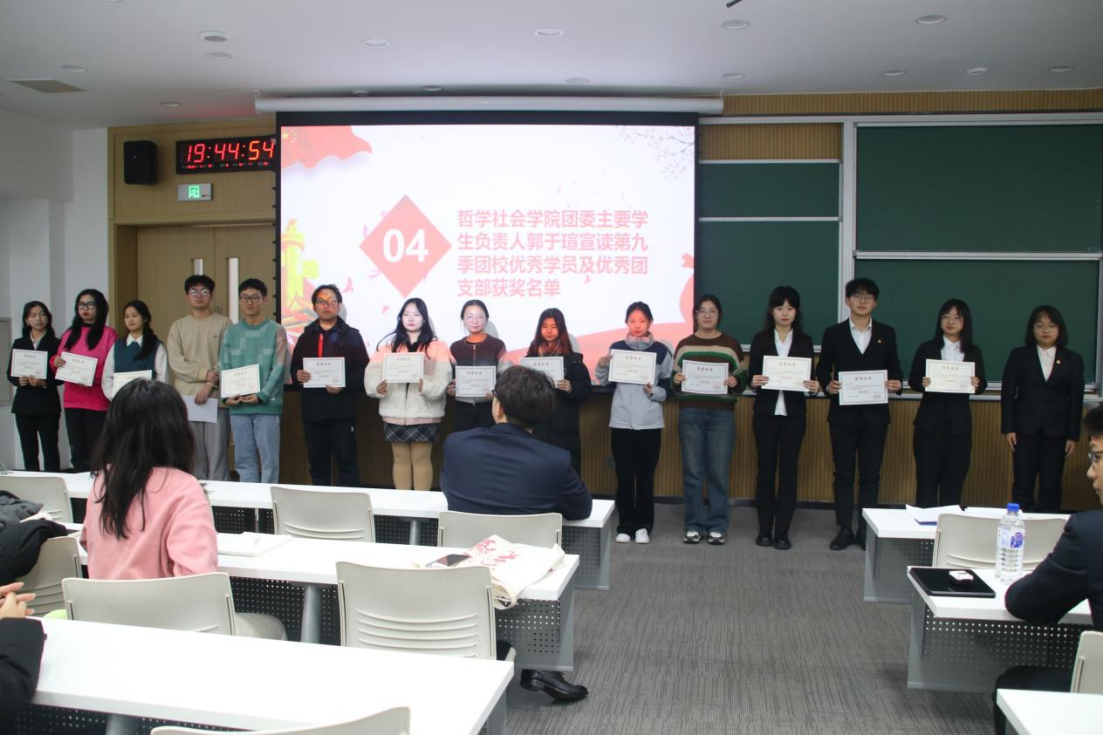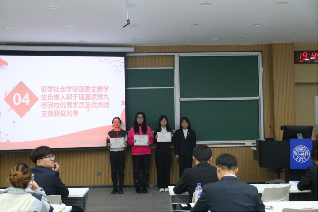 大会第四项,团委主要员工负责人郭于瑄同学宣读第九季团校优秀学员及优秀团支部获奖名单。