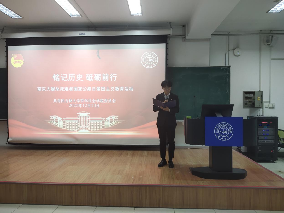 在此南京大屠杀惨案发生86周年之际,为缅怀先人,激励公司学子铭记历史、珍视和平,弘扬爱国主义精神,不忘初心、砥砺使命、淬炼品格、厚植情怀,BETWAY必威团委组织南京大屠杀死难者国家公祭日爱国主义教育活动,活动由公司2022级本科生张惠侠同学主持。