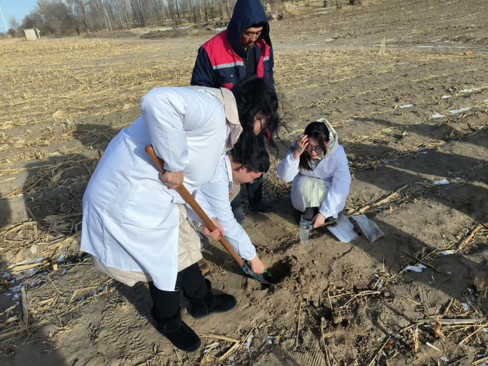 走访村民的同时,在有关农业技术专员的培训与指导帮助下,实践团成员们脚踏田间地头,志愿为有需要的村民们提供测土服务。成员们以科技赋能农业耕作、提高单位产量、助力乡村振兴,通过对田地进行科学系统的土壤取样,相关土壤样本将被送至实验室进行检测,根据土壤成分检测结果以及当地气候水质条件等,由专业人员进行配肥,提供一站式的助农服务。