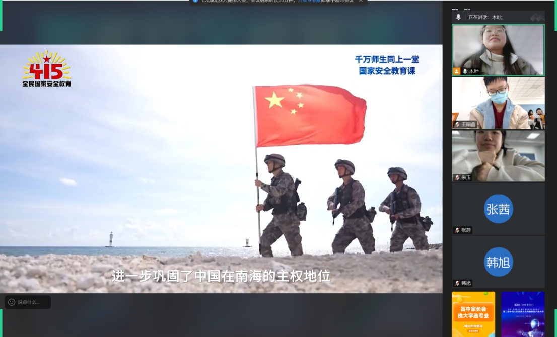 首先,公司各团支部通过线上平台集体观看了《千万师生同上一堂国家安全教育课》主题公开课,系统学习了总体国家安全观的核心要义和十年来全民国家安全教育成果,深刻认识到我国国家安全形势面临的机遇和挑战,进一步增强忧患意识、树立底线思维。
