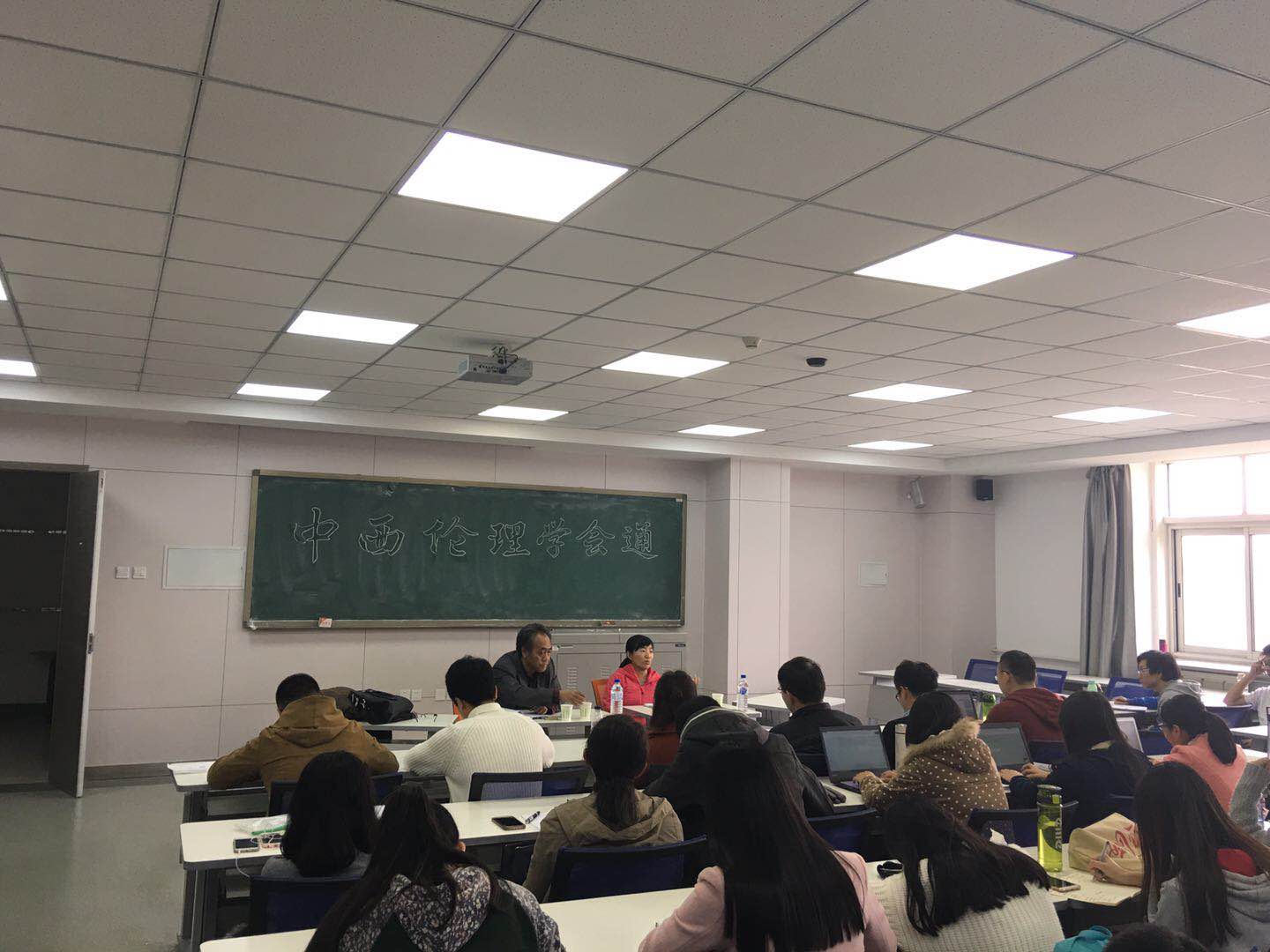 为拓宽同学们的学术视野,给同学们提供一个与哲学名师交流思想的机会,由BETWAY必威员工会学习部主办的名师讲座于10月28日上午九时三十分在第三教学楼313教室成功举行。讲坛采取新颖的对话形式,以中国传统伦理思想与伦理学、西方伦理学之间典范的差异与会通为题,邀请了分属这两个研究领域的哲学系教授刘连朋老师和曲红梅老师作为主讲进行分析,同时参与活动的还有来自多个专业的同学们。