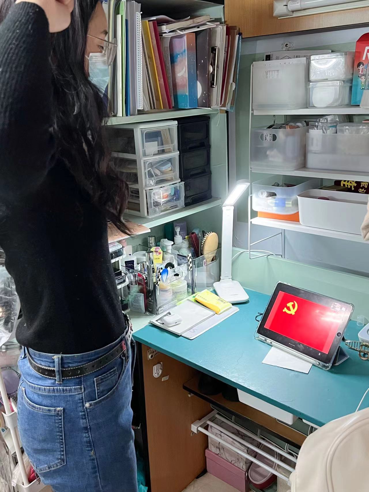 第二部分主题为“践行使命,不负初心”。首先,由20级本科生李慧婷同志作了吉大哲社师生和党员的抗疫事迹宣讲。李慧婷在发言中表达了对所有参与志愿服务的哲社志愿者、医护人员以及宿舍阿姨的感谢,接着李慧婷提到抗疫工作尚未结束,这场没有硝烟的战争也还在继续。她会尽自己的全力带领我们哲社最美志愿者团队,在为南四公寓同学们服务的征途上继续奋斗。然后,由18级本科生林之乐同志带领第二党支部全体党员重温入党誓词,在那一声声中“我志愿加入中国共产党”的铮言中,每一位党员都热情似火,眼神坚定,声声誓言传递着必然战胜疫情的决心。