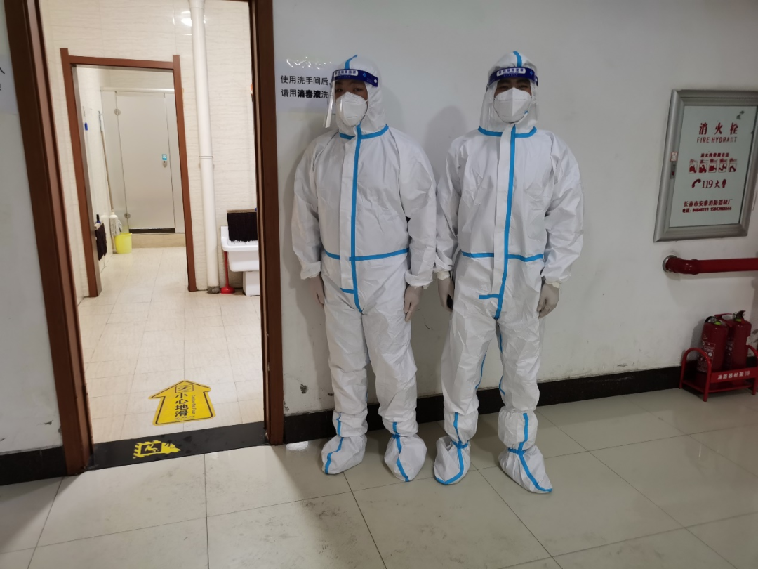 我们的工作地点是洗手间,在自己值班的时间段内,我们负责提醒洗手间内同学洗漱时保持适当距离、减少聚集,在用水高峰时安排本楼层同学错峰使用热水,协助洗手间消杀等。我们一起出动值班,经历过6点起床的早班,也经历过23点回寝的晚班,穿上防护服的不适感让我们更加理解并感激医护人员和志愿者们的辛勤付出。在即将毕业的日子里,能和兄弟们并肩战斗,也让我们觉得这是一段极为难忘的经历。