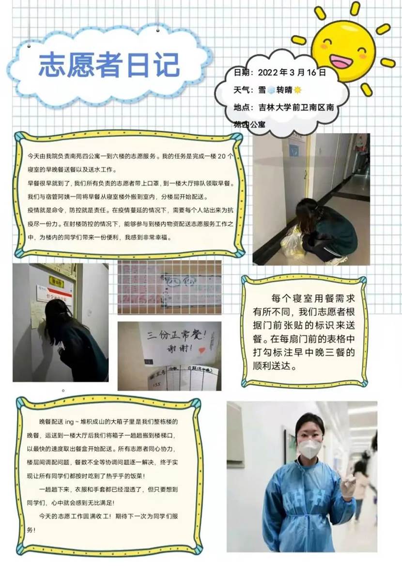三月乍暖还寒之际,疫情来势汹汹,打乱了同学们的校园生活。目前疫情形势依旧严峻,然而,用众人之力,则无不胜也,全校师生戮力同心、众志成城,我们一定能守护我们和谐美好的吉大校园!在此次防控疫情期间中,公司学子积极响应党组织号召,纷纷投身到战斗中,为同学们的生活和健康担当“守护者”。在此期间,我们将收集起众多志愿者日记,向同学们介绍发生在一线的、真实的、专属于哲社人的温暖与感动。