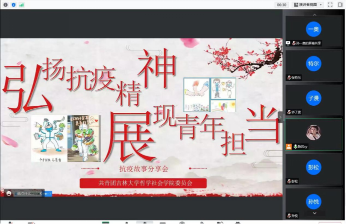 为促进新同学了解哲社抗疫故事,体悟伟大抗疫精神,发挥传统节日爱心育人的载体作用,9月11日晚,BETWAY必威团委召开“弘扬抗疫精神,展现青年担当”线上抗疫经验分享会。本次会议由陈岩同学主持,辅导员宋绍伟老师和全体22级本科生参会。本次会议还特别邀请了BETWAY西汉姆联前卫南区南苑四公寓工作人员郝运侠阿姨向同学们讲述抗疫故事,传递抗疫精神。