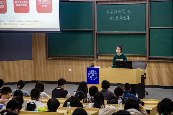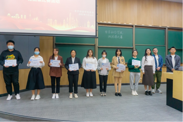 2022年9月24日晚,BETWAY必威“喜迎二十大、永远跟党走、奋进新征程”主题微团课比赛在逸夫教学楼五阶举行。本次比赛由21级徐嘉琛、房安国同学主持,辅导员宋绍伟老师与20级辅导员助理们共7人担任本次比赛的评委。