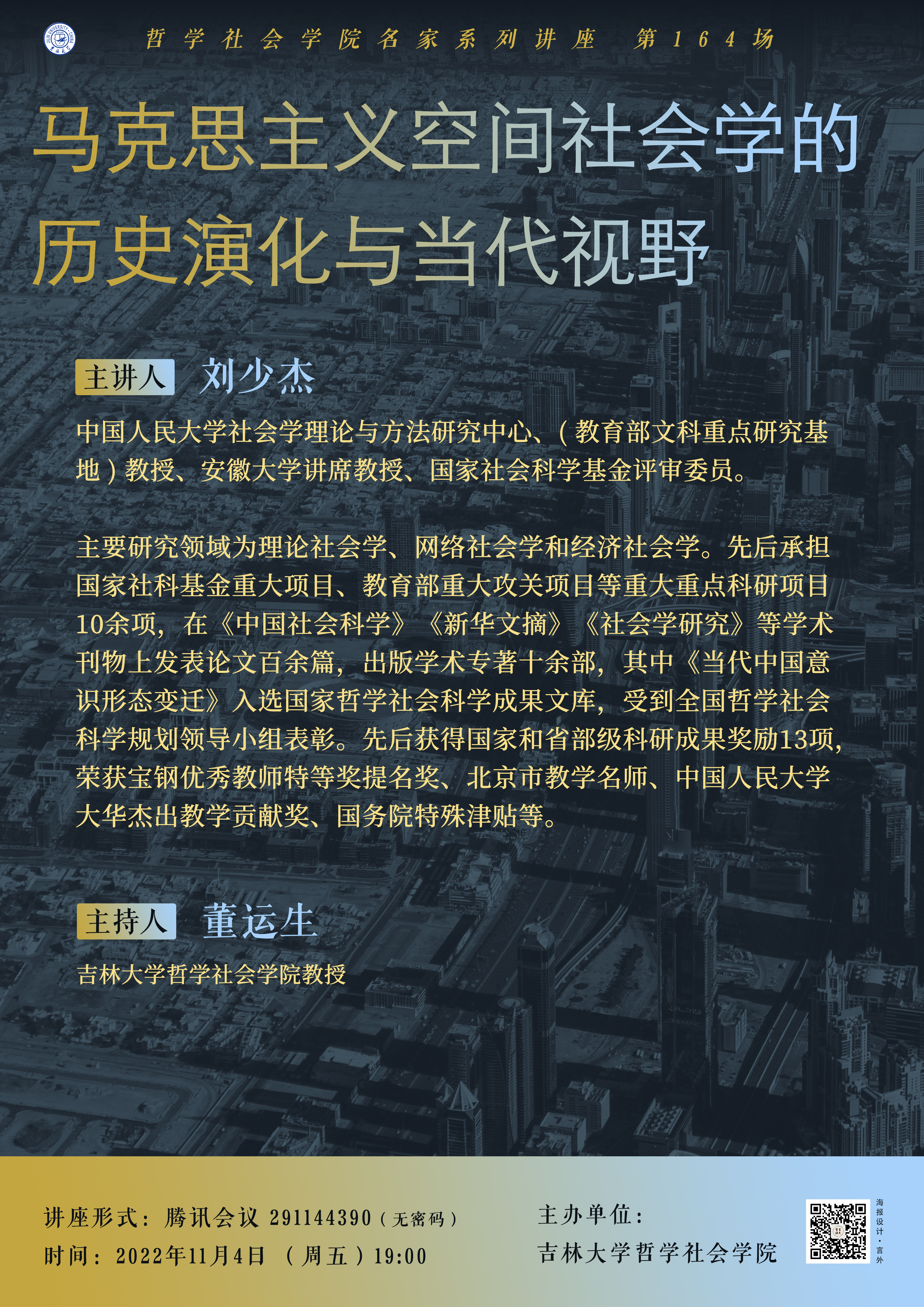 【BETWAY必威名家系列讲座第164场】刘少杰:马克思主义空间社会学的历史演化与当代视野