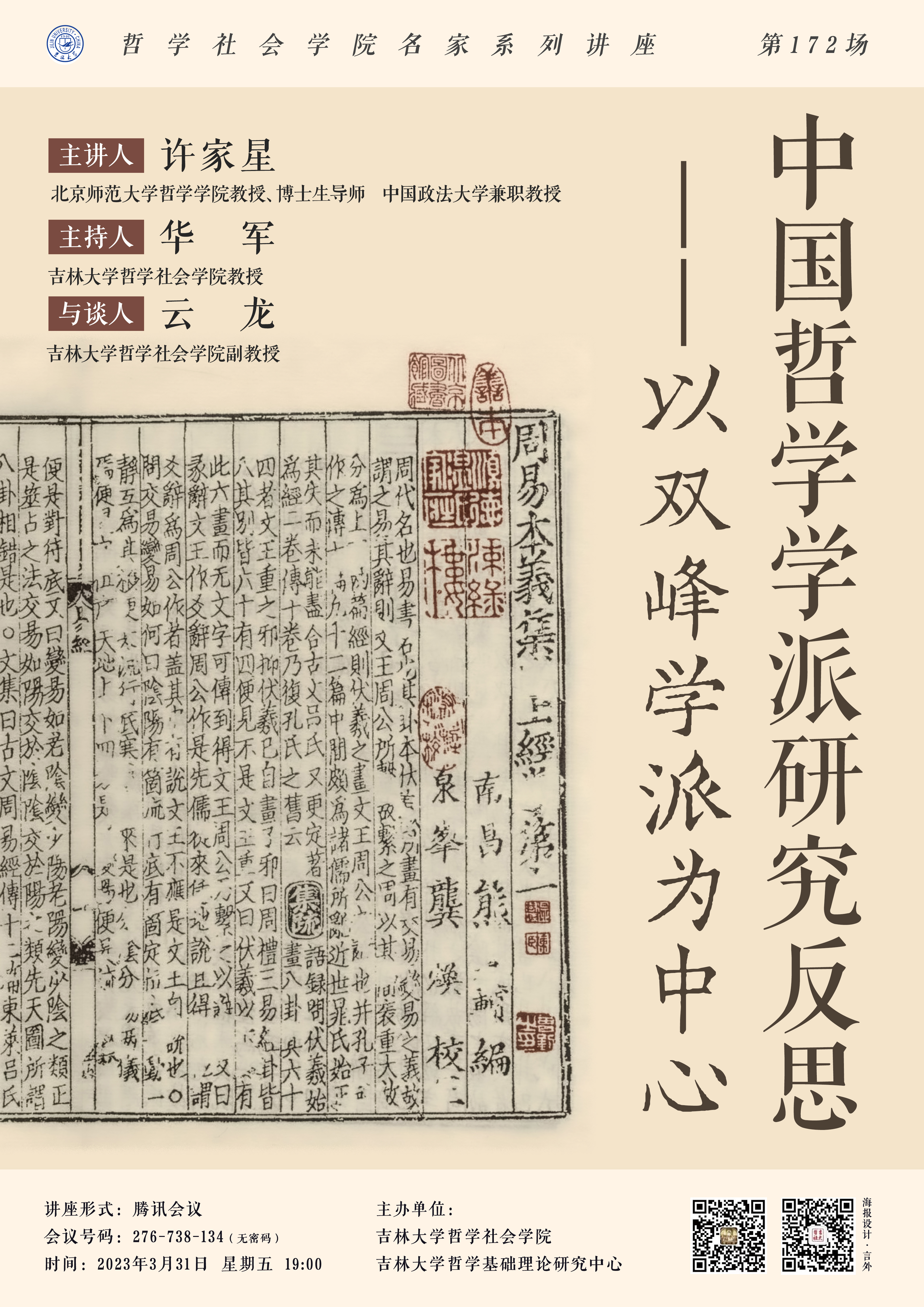 【BETWAY必威名家系列讲座第172场】许家星:中国哲学学派研究反思——以双峰学派为中心