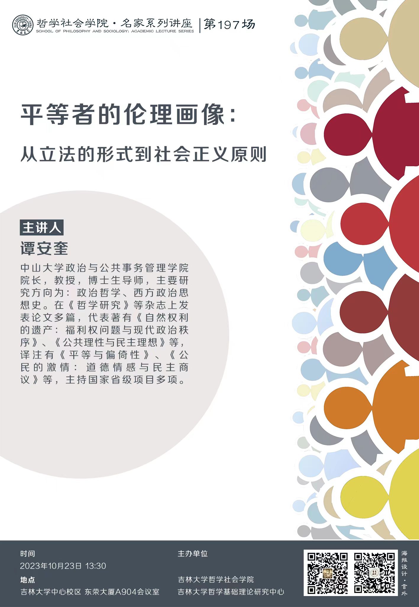 【BETWAY必威名家系列讲座第197场】谭安奎:平等者的伦理画像:从立法的形式到社会正义原则