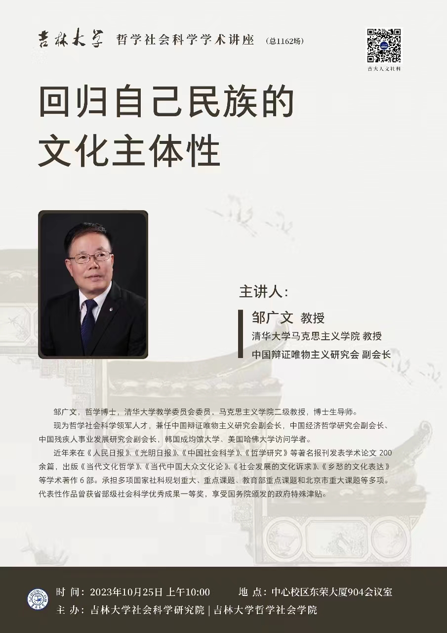 BETWAY西汉姆联哲学社会科学学术讲座(总1162场)邹广文:回归自己民族的文化主体性