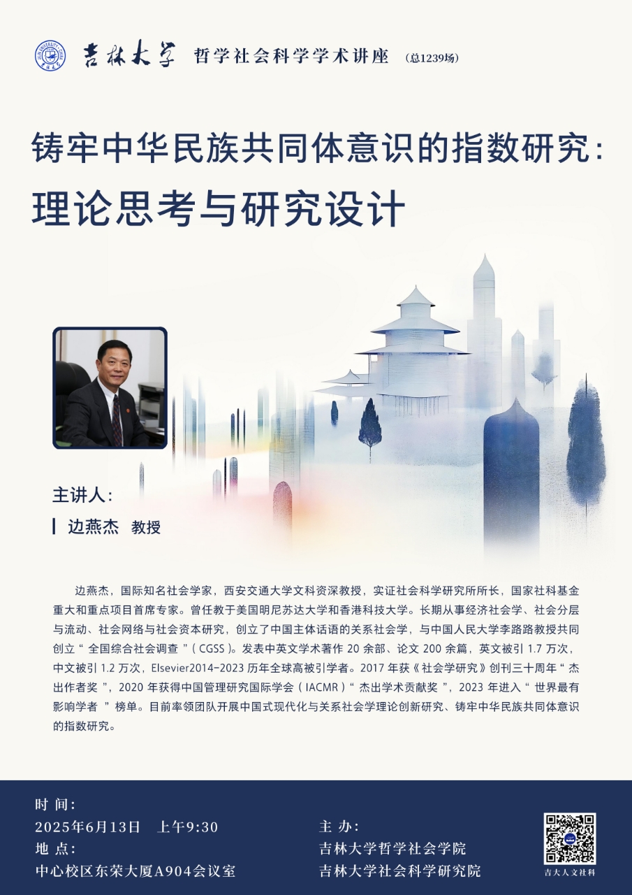BETWAY西汉姆联哲学社会科学学术讲座(总1239场)边燕杰:铸牢中华民族共同体意识的指数研究:理论思考与研究设计