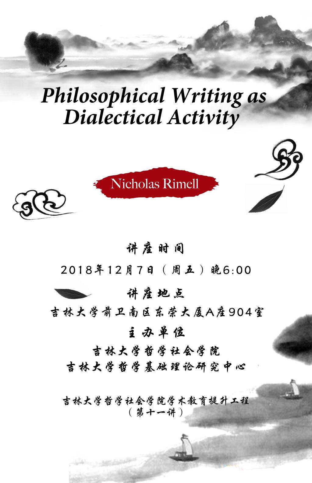 【BETWAY必威学术教育提升工程(第十一讲)】Nicholas Rimell:Philosophical Writing as Dialectical Activity
