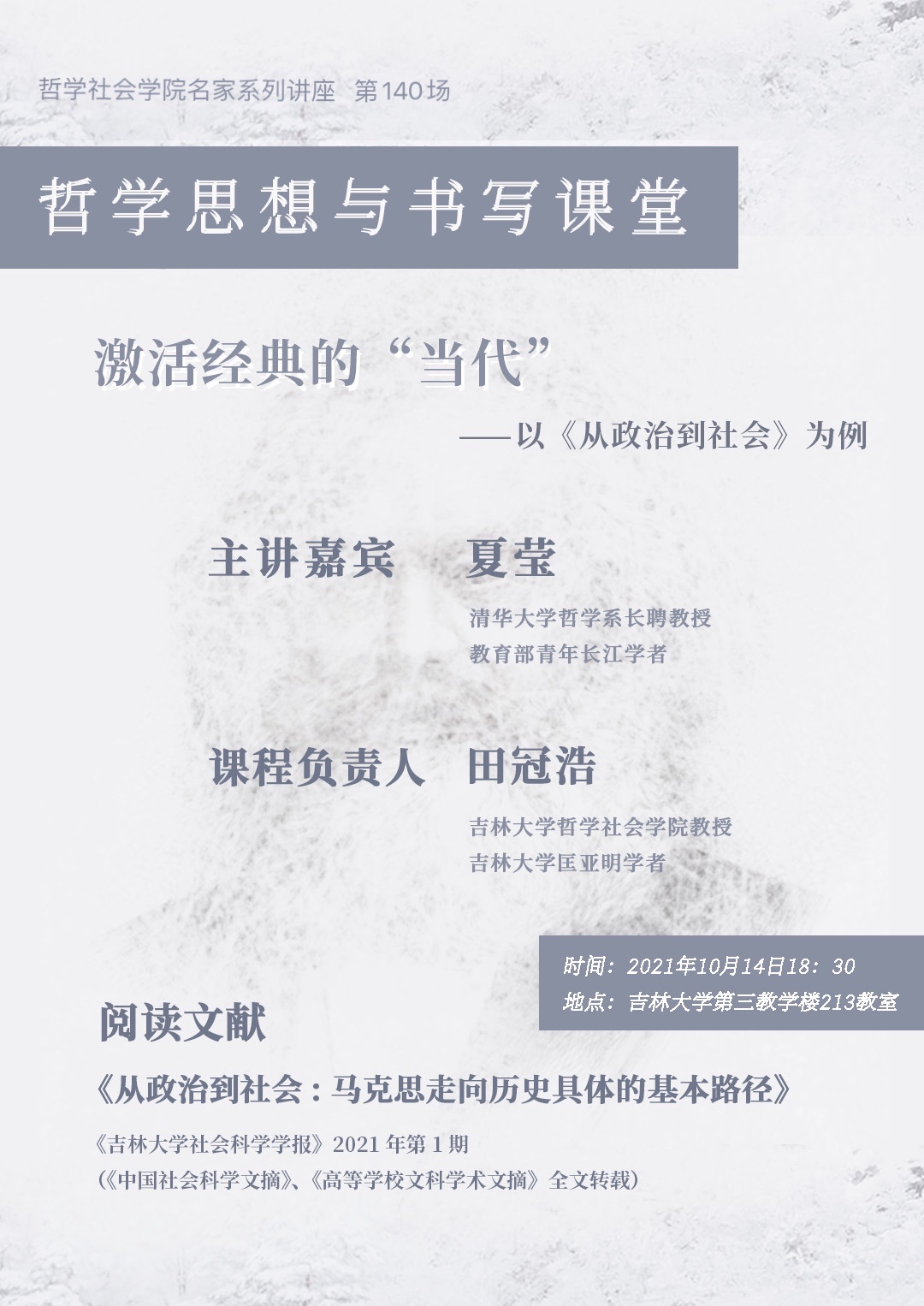 【BETWAY必威名家系列讲座第140场】【哲学思想与书写讲堂】夏莹:激活经典的“当代”——以《从政治到社会》为例