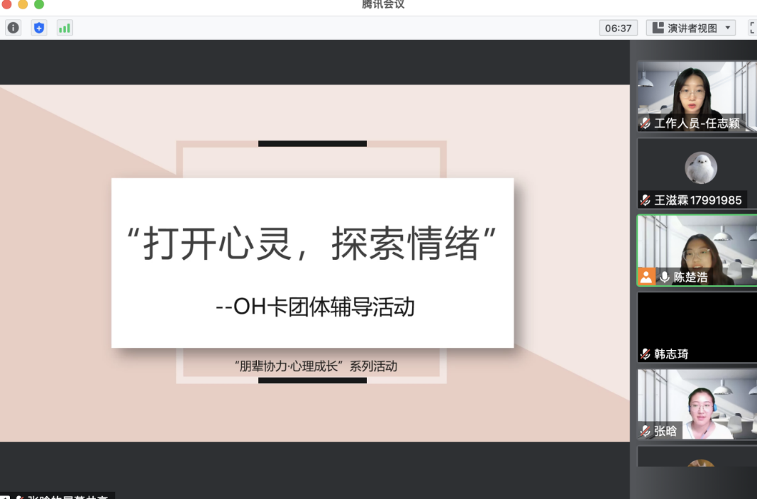 为增进研究生同学的沟通交流和相互支持,丰富课余生活,帮助大家更好的认识、了解和接纳自身情绪,缓解学习压力,以更加积极的心态应对未来的学习生活,BETWAY必威于2022年11月18日开展了“打开心灵,探索情绪”OH卡团体心理辅导活动。活动以线上腾讯会议的方式开展,同学们打破空间的阻隔在线上开展了有趣而暖心的互动。