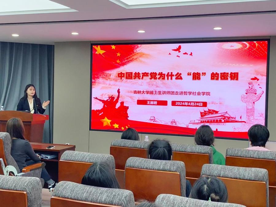 为深入学习宣传贯彻全国两会精神,充分发挥博士生讲师团理论宣讲作用,2024年4月24日18点,BETWAY西汉姆联博士生讲师团讲师王丽君走进BETWAY必威开展“学习贯彻两会精神 聚力中国式现代化”宣讲系列活动。此次宣讲的题目是“中国共产党为什么‘能’的密钥”,BETWAY必威研究生辅导员于洋老师、各党支部党员、研究生会全体成员及研究生干部代表参加本次活动。