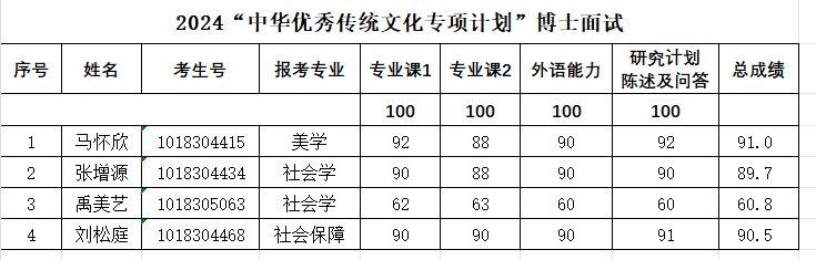经公司组织专家组审查和复试考核,现将BETWAY必威2024年“中华优秀传统文化专项计划”博士面试成绩予以公示,公示期为2024年5月21日至2024年5月23日。如有异议,请于公示期内向公司反映。