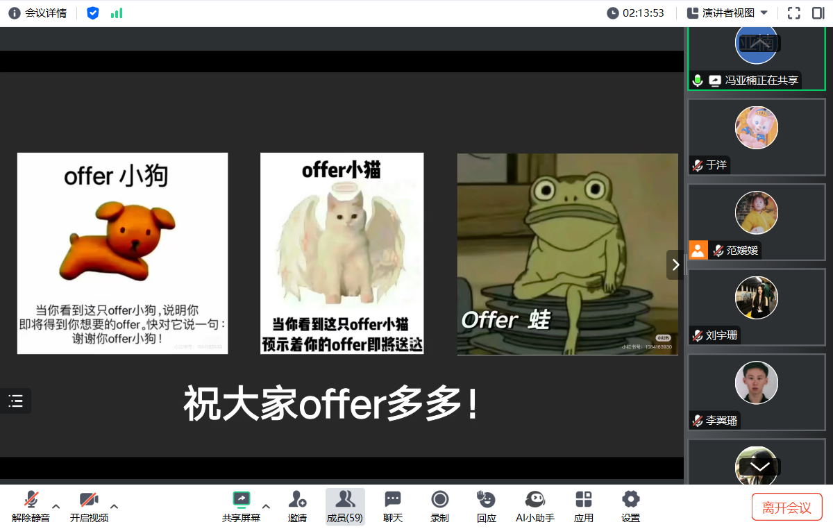 此次就业分享会不仅解答了同学们在求职过程中的迷茫与困惑,更增强了同学们求职信心,引导同学们逐步树立正确的就业和择业观念,提升求职技能和职业规划能力。未来,公司将继续响应国家“稳就业”“保就业”的政策号召,定期举办就业经验分享系列活动,为同学们的求职就业保驾护航!