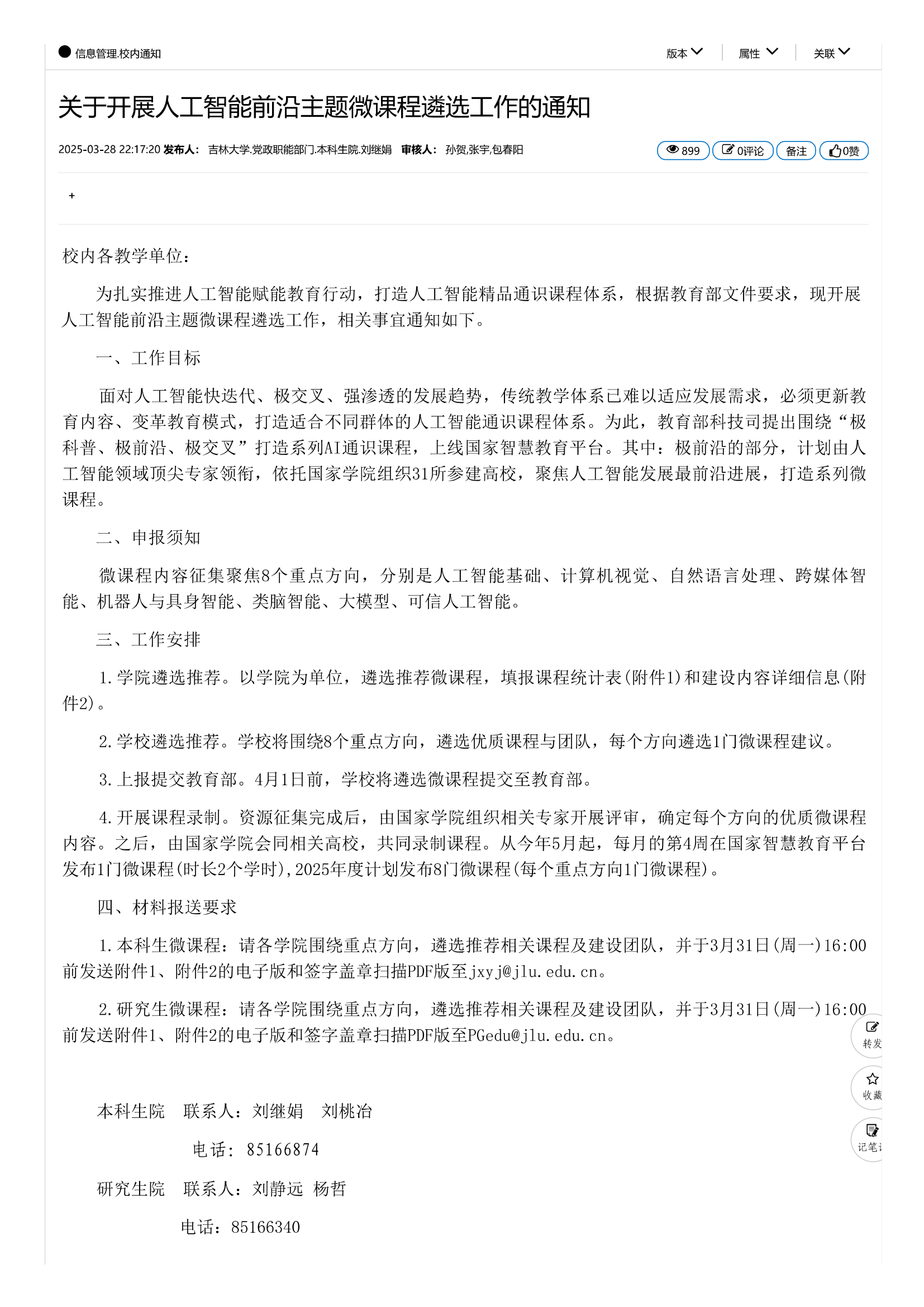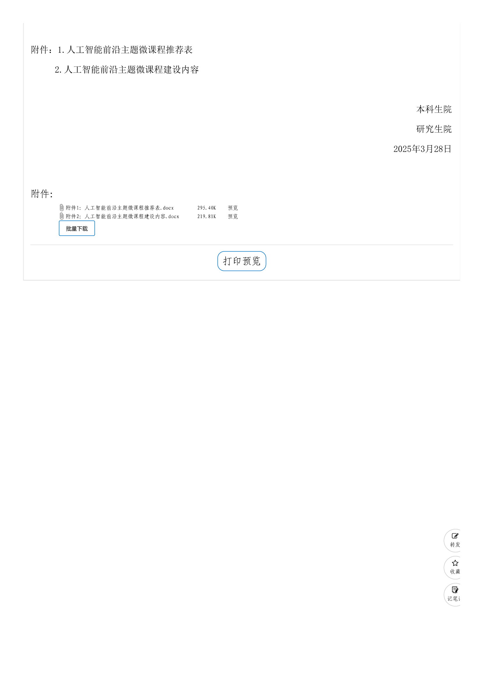 关于开展人工智能前沿主题微课程遴选工作的通知