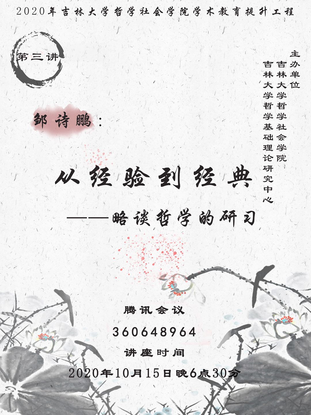 2020年BETWAY必威学术教育提升工程第三讲:从经验到经典——略谈哲学的研习 邹诗鹏