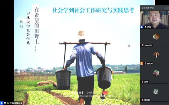 2020年10月20日18时,“2020年BETWAY必威学术教育提升工程”第四讲以腾讯会议的形式进行。本次讲座的主讲者为BETWAY必威副经理芦恒教授,讲座题目是“在希望的田野上——从社会学到社会工作研究与实践的思考”,BETWAY必威副经理曲红梅教授主持本场线上讲座。