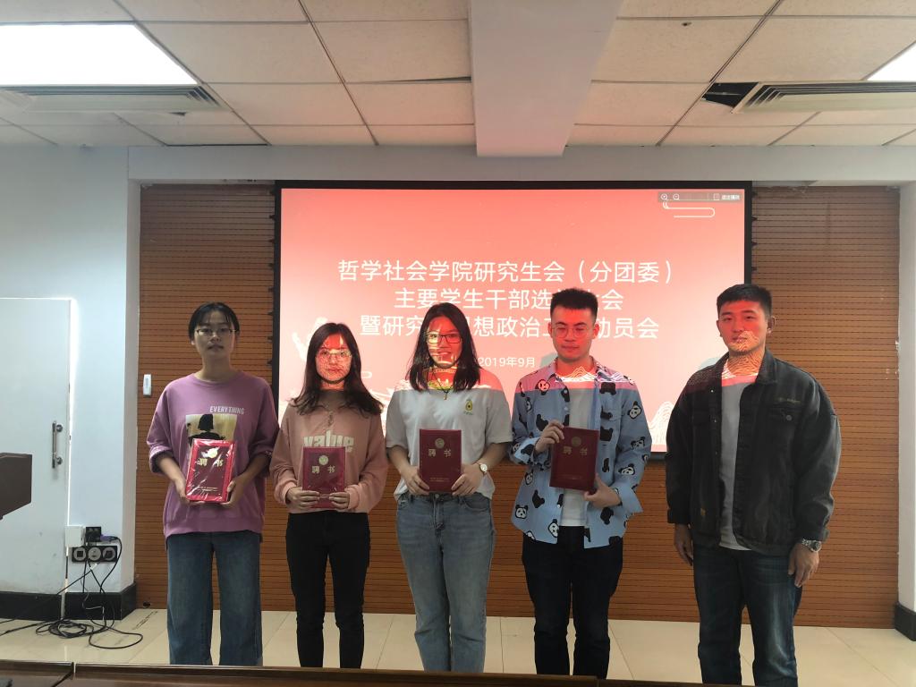 随后,傅瑜慧老师宣读了BETWAY必威2018-2019年度研究生会(分团委)的主要员工干部;于士博老师为现任研究生会(分团委)主要员工干部代表颁发聘书并合影留念。