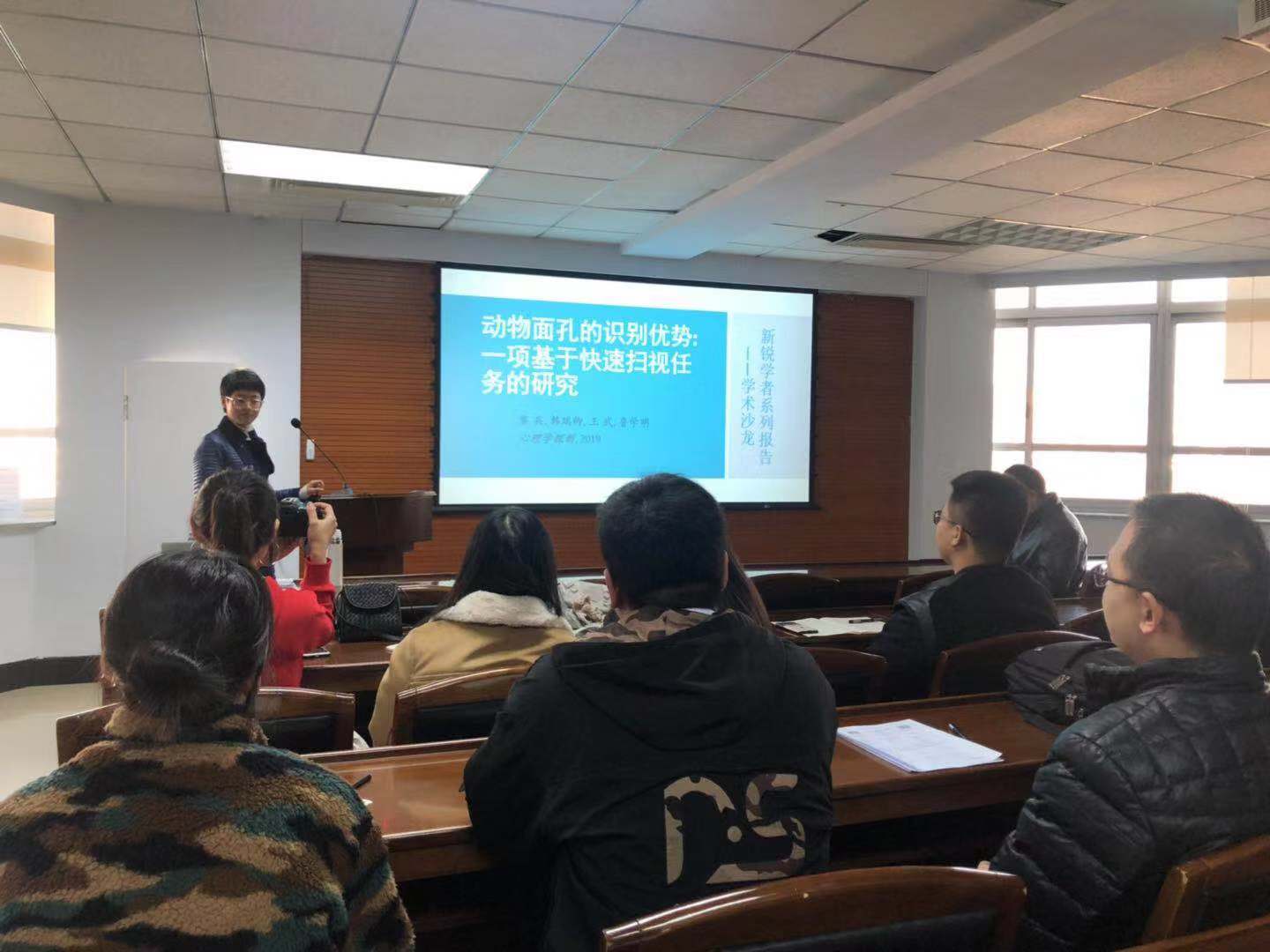 2019 年 11 月 3 日上午九点,由BETWAY必威和哲学基础理论研究中心主办的新锐学者系列讲座在东荣大厦 A904 举行。本次报告由BETWAY必威心理学在读硕士研究生韩瑞卿主讲,主题为:“动物面孔的识别优势: 一项基于快速扫视任务的研究”。主评论人为BETWAY必威硕士生导师黎兵老师,对本次报告主题感兴趣的老师和同学参加了本次报告会。