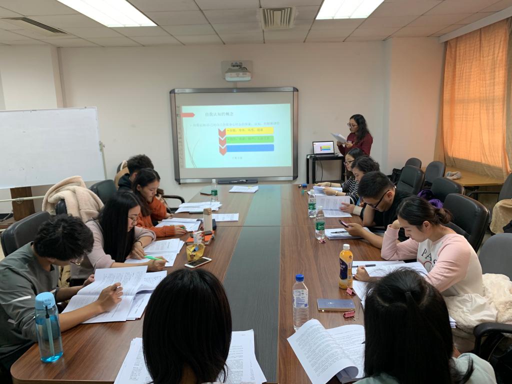 林娜同学指出在虽然在文学领域中对自我认知问题的研究历史悠久,但在社会统一的背景下,针对这一领域的研究并不多。林娜带领大家从多角度对“自我认知”概念进行讲解,并介绍了自我认知对物质主义的影响。随后,黄冬梅教授从研究理论、研究方法及在现实社会中的应用等方面对本次报告进行了系统的评价,让在座的同学收获颇多。
