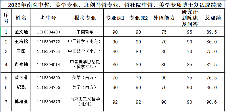 2022年博士申请考核复试成绩参见下图