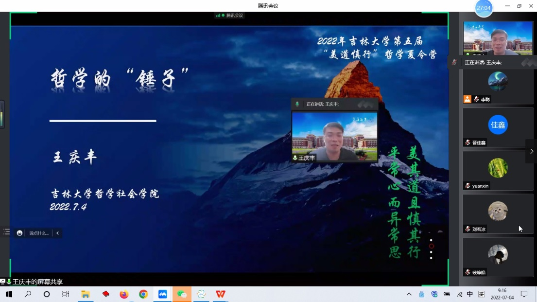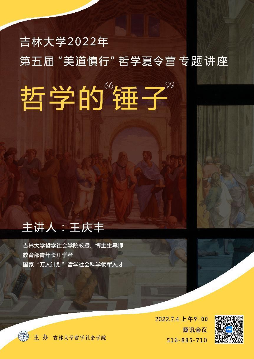 2022年7月4日上午,国家级青年人才、哲学社会科学领军人才、BETWAY西汉姆联哲学基础理论研究中心专职研究员王庆丰教授,在线为参加BETWAY西汉姆联2022年“美道慎行”哲学夏令营的全国各高校优秀学子们作了以“哲学的‘锤子’”为题的学术讲座。本次报告由哲学系党支部李聪书记主持。