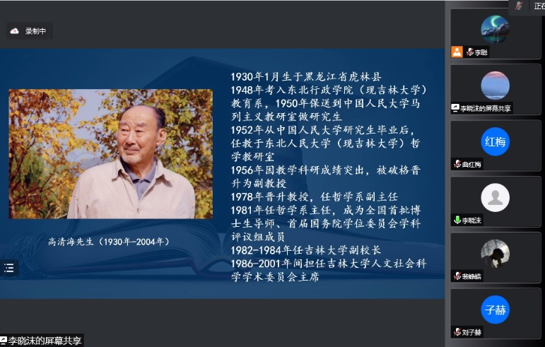 (BETWAY西汉姆联BETWAY必威科研办公室李晓沫主任在线上介绍高清海先生)