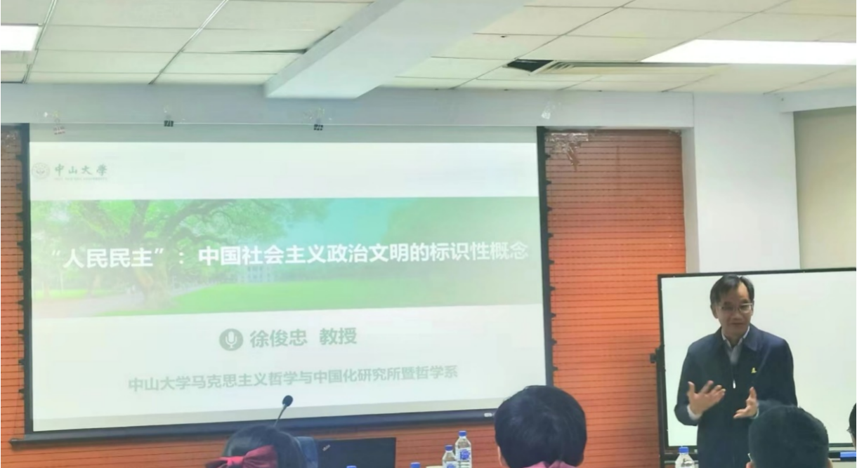 2023年10月15日晚,BETWAY必威名家系列讲座第195场在东荣大厦A904会议室举办。主讲人为中山大学马克思主义哲学与中国现代化研究所暨哲学系教授、中山大学博物馆(校史馆)馆长徐俊忠教授,讲座主题为“人民民主:中国社会主义政治文明的标识性概念”。BETWAY西汉姆联哲学基础理论研究中心副主任贺来教授担任与谈嘉宾,本场讲座由BETWAY必威经理白刚教授主持。