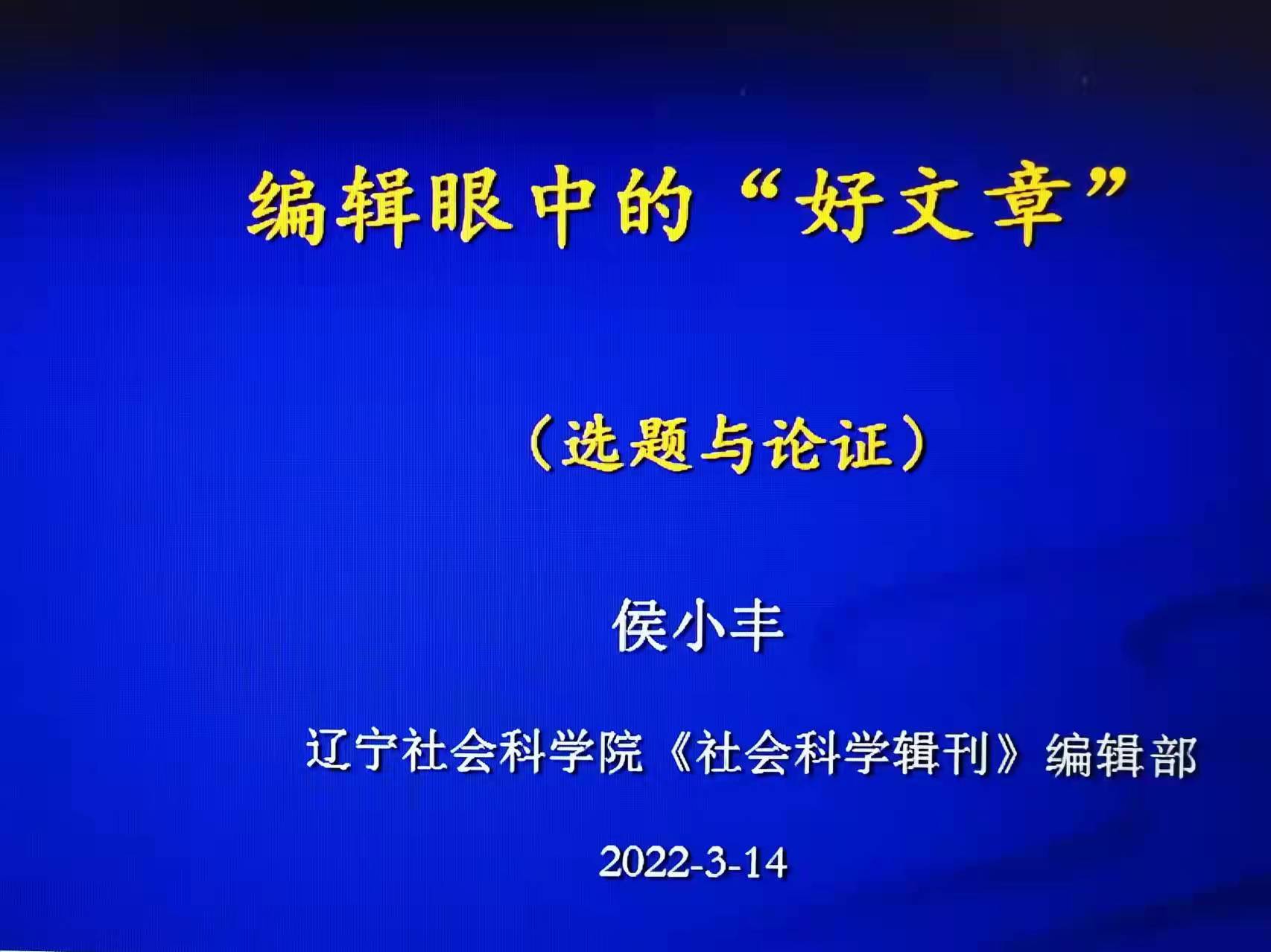 2022年3月14日晚,辽宁社会科公司研究员、《社会科学辑刊》哲学编辑侯小丰研究员应邀做BETWAY必威名家系列讲座(第151场)。讲座题为“编辑眼中的‘好文章(选题与论证)’”。本次讲座以线上腾讯会议形式举办,由BETWAY西汉姆联哲学系主任白刚教授点评,BETWAY必威李慧娟教授主持。