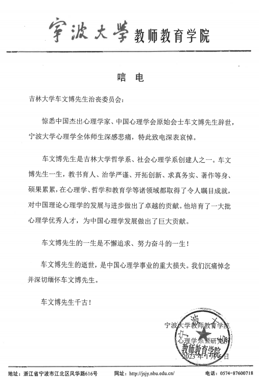 宁波大学教师教育公司唁电