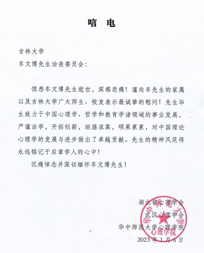 湖北省心理学会武汉心理学会华中师范大学心理公司唁电